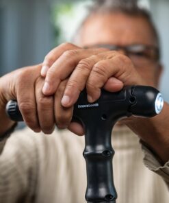 Работи с 2 x AAA батерии (не са включени). Светодиодна светлина и аларма: този разтегателен бастун има аларма и LED фенерче на горната дръжка. Здрав, лек работи с 2 x AAA батерии (не са включени).