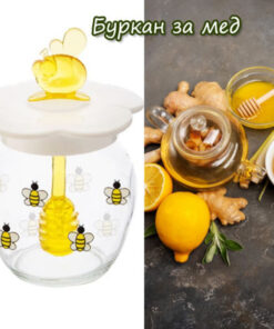 Бурканът за мед има размери 7 x 10 см, което го прави удобен и компактен. В комплекта с буркана за мед включена е и лъжичка за мед. Стилният буркан за мед е повече от просто съд за съхранение.
