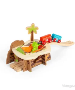 Дървено влакче с релси превръща детската стая в оживена строителна площадка, където малките машини, влаковите композиции и героите от играта се срещат в една обща история.
