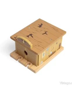 Широко отварящите се врати правят сцената по-динамична: влакът може да влиза и да излиза в различни моменти, а детето да решава кой „преминава“ и кой „изчаква“. Темата „дивия запад“ помага на детето лесно ...