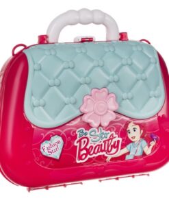 В заключваща се кутия има имитации: 1 x сешоар, 1 x имитация на огледало, 3 x лак за нокти, 3 x пръстен, 2 x гривна, 1 x мъниста, 2 x червило, 1 x гребен, 1 x парфюм, 2 x странична стойка, 1 х капак, ...