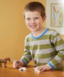 Детски комплект за декорация Кончета Melissa & Doug. Този комплект включва две готови за декориране фигурки на коне от твърда смола с 6 кофички с нетоксична боя и лесна за почистване четка.