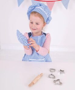 Този комплект включва също четири резачки за сладкиши и здрава дървена точилка, за да помогнете на вашето дете да стане креативно в кухнята за. Тази ярка престилка с подходяща шапка и ръкавица за готвене ...