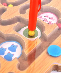 Този дървен пъзел се предлага с магнитна пръчка, която да води топките през лабиринта. Страхотен начин за развитие на фината моторика и координацията око-ръка на децата.