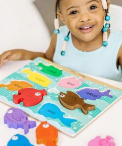 Дървен пъзел за деца Многоцветни рибки Melissa & Doug. Лесните за хващане изключително дебели парчета в жива дъга от цветове правят този пъзел перфектен начален пъзел за малки деца и деца в предучилищна ...