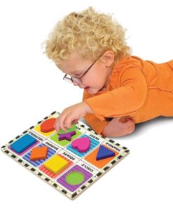 Дървен пъзел за деца Геометричните фигури Melissa & Doug. Дървен пъзел с дръжки Геометричните фигури е полезен за фината моторика, концентрацията и координацията, както и за разпознаването на цветовете ...