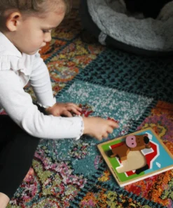 Този дървен пъзел за малки деца се предлага в комплект с гладка дървена дъска с красива сцена от двора. 5 см – материал: дърво – брой части: 4. Перфектният първи дървен пъзел за малки деца, нашият Chunky ...