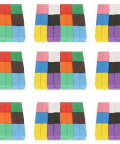 Комплектът включва 360 блокчета в 12 различни цвята: кафяво, черно, 2 нюанса на синьото, оранжево, червено, розово, зелено, жълто, лилаво и бяло. Блокчетата са изработени от масивно дърво и боядисани със ...
