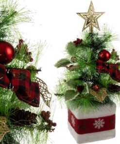 Вътре в клоните има дебела тел, която ви позволява да закачите декорации, без да утежнявате дървото и ви позволява да променяте формата им. Мини елха за декорция 45см Ruhhy 22591.