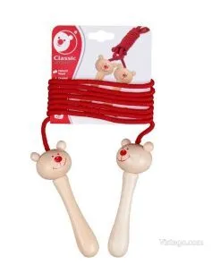 Въжето е в червен цвят, а ръкохватките са от дърво и са замислени да стоят приятно в детската ръка. Червеният цвят прави играта по-забележима, а дървените ръкохватки помагат детето да държи стабилно и уверено ...
