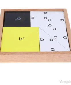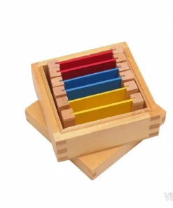 Плочките са общо 6 дървени плочици, оцветени в трите основни цвята: две жълти, две червени и две сини. Този Монтесори комплект е изработен от дърво и е организиран в кутия с капак.