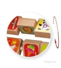 Комбинира букви, думи и числа в едно занимание. Подпомага ранното учене чрез игра и повтаряеми упражнения. Дървената играчка е удобна за използване в къщи и в група.