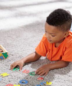 Детско килимче с букви и цифри Melissa & Doug. Има повече от 30 квадратни фута пространство за игра върху издръжливото и меко килимче, за да играете съвпадащи игри с комплекта от 36 двустранни карти за ...