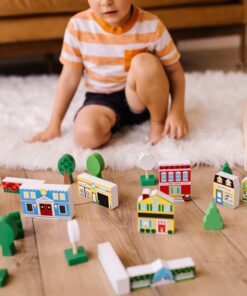 Дървен комплект за деца Създай град Melissa & Doug. Изградете свят, изпълнен с въображение, блок по блок! Парчетата се съхраняват спретнато в разделена дървена тава.