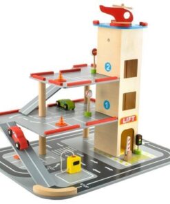 Многофункционален дизайн Комплектът включва триетажен паркинг, асансьор, газова помпа, хеликоптер с площадка за кацане, две коли и пътни знаци. Развийте въображението и уменията на вашето дете сега!