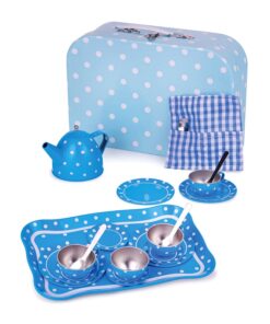 Детски комплект за чай син на бели точки Bigjigs. Този сервиз за чай е направен от здрава тенекия и има дизайн на точки. Този стилен детски комплект за чай на сини точки включва четири метални чаши и чинийки ...