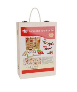Комплектът включва кутия и аксесоари като: винтове, гайки, трион, чукове, дъски с отвори, отвертки, клещи, линийка и ъгъл. Комплектът има сертификати CE и EN 71.