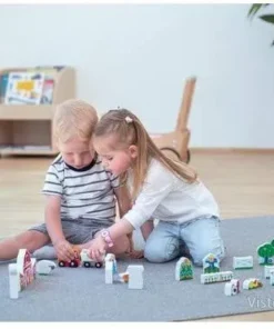 Комплектът за игра с ферма е подходящ и за кратки „мисии“: да се подреди сцената, да се разменят местата. Удобно съхранение в кутия, за да е лесно при прибиране и пренасяне.