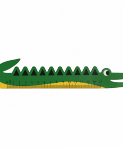 Тази дървена линийка с форма на крокодил е с размери 0-15 сантиметра и включва множество забавни факти за крокодил.