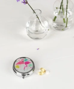Страхотна за пътуване за съхранение на лекарства или бонбонки, тази кутия с три отделения е част от нашата колекция Фламинго.