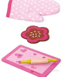 Подходящ за ролеви ситуации у дома и в детската стая. Дървеният кухненски комплект е подходящ, когато детето иска да имитира печене и сервиране в „своята“ кухня.