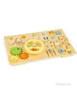 Това развива техния аналитичен ум и техния интерес към изследването на нови неща. Някои от активностите, които предлага тази дървена играчка, са въртящо се зъбно колело с улеи и пясък, велкро, райбер, катарама ...