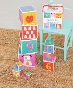 Блоковете варират от най-малкия като куб с размер 4 cm до най-големия като куб с размер. Забавлявайте се и учете с този комплект от 10 картонени блокчета Happy Life, идеални за подпомагане на децата да подобрят ...