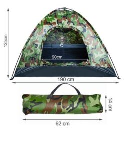 Разпъва се от само себе си - скелетът на палатката е оформен от гъвкави нишки от фибростъкло - благодарение на което се разгъва за 2 секунди след изваждането й от покривалото.