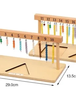 Тази рамка за нанизи е удобна за кратки занимания на маса, когато търсите тиха и смислена игра. Така монтесори рамката за нанизи превръща абстрактните числа в видимо и сравнимо количество.