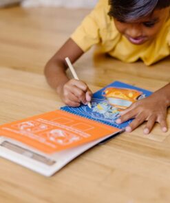 С включения дървен стилус децата могат да гравират в рамките на линиите, за да разкрият 12 сцени с превозни средства, включващи автомобили, камиони, влакове и други; като добавят шарки и детайли, те могат ...
