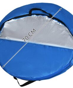 Рамката на палатката е изработена от еластични нишки от стъклени влакна - благодарение на което тя се разгъва за 2 секунди след издърпване от покривалото. Плажна мини палатка в син цвят Malatec.