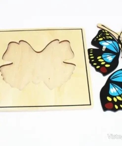 Когато частите се подредят правилно в рамката, се получава стилизирано изображение на животно или растение. Този Монтесори пъзел е 2D и е изграден от рамка и отделни елементи с различни форми.