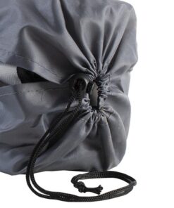 Голям градински стол-хамак в черен цвят. Материалът осигурява достатъчно вентилация, за да поддържа комфорта при използване на висящия стол дори при горещо време.