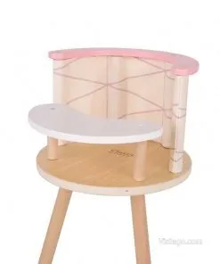 Дървено столче за хранене превръща грижата за любимата кукла в истинска роля у дома и дава на детето удобен начин да подреди „храненето“ така, както го е виждало в ежедневието.
