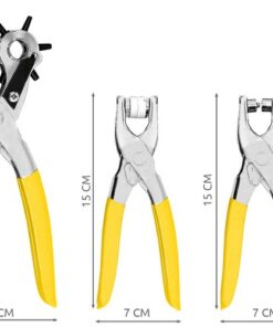 Комплект клещи за кожа и бижута 3бр. 3 инструмента за кожарство, като клещи за дупки, монтажни капси и скоби в кожа, филц, картон и други материали, са незаменими при извършване на модификации и корекции ...