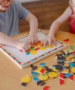 Този комплект се доставя опакован в удобен, закопчаващ се пластмасов. Проектирана за часове на игра и идеална за пътуване, тази дървена магнитна дъска включва 120 цветни геометрични магнита.