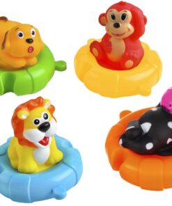 Цветни играчки за вана - детски играчки. Сетът включва 4 пластмасови пъзела и 4 меки, гумени животни във формата на лъв, маймуна, куче и крава. Комплектът за баня се състои от 8 елемента, които се характеризират ...