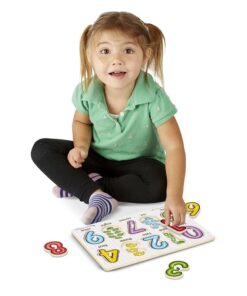 Цветна картина под всяко парче показва същия брой елементи като числото в горната част на парчето. Детски дървен пъзел с Цифри Melissa & Doug. Концепциите за числа, от нула до девет, са илюстрирани в този ...
