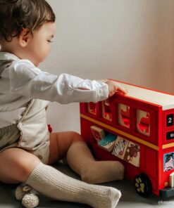 Карайте цветната колекция от дървени животни из града в този красиво изработен автобус за сортиране на форми. В края на пътуването животните могат да бъдат разтоварени през вратата в задната част на автобуса ...