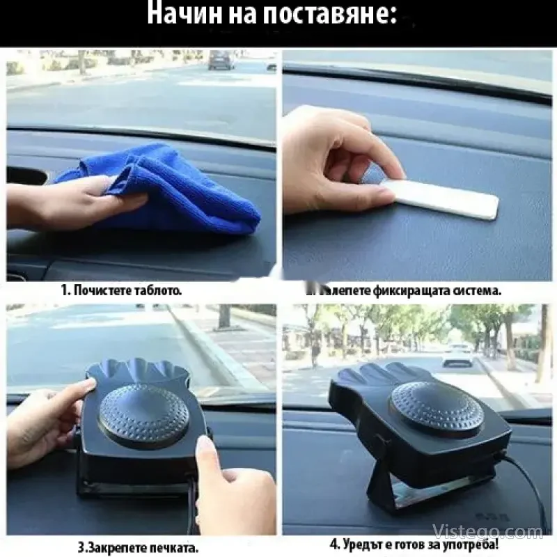 - Комплектът включва: печка за автомобил, система за захват, транспортна опаковка