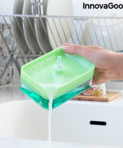 Антибактериален дозатор за кухненски сапун InnovaGoods. Антибактериален и хигиеничен дозатор за кухненски сапун с оригинален многофункционален дизайн, който предотвратява натрупването на бактерии, капки и разливи на вода или сапун. Има бързосъхнеща стойка за гъбата, която ѝ позволява да се оттича през вентилационните отвори. Има и тава за оттичане, за лесно отстраняване на водата, която капе от гъбата. Този компактен ръчен дозатор е много удобен и лесен за използване и е много полезен за миене на чинии и др. Сапунът се поставя директно върху гъбата, като се притиска към дозатора. Освен това помага да поддържате кухнята подредена, като по този начин спестявате време и усилия. Контейнерът за сапун е с вместимост 330 ml и е прозрачен, за да можете да видите колко сапун има по всяко време. Може да се използва с всякакъв вид гъба, чистачка, кърпа за чинии и др. и може да се разглоби напълно, което го прави лесен за почистване.