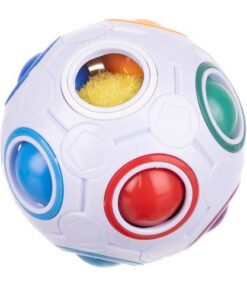 Антистрес топка с цветни топчета за нареждане е универсална играчка, която е предназначена както за по-малки деца, така и за възрастни хора и възрастни. Представената антистрес топка е чудесен начин за борба със стреса както за по-младите, така и за възрастните. Ще бъде полезен и при лечение на тревожност и фобии. Антистрес топката на практика не само облекчава стреса, но и допринася за подобряване на двигателните умения и има много добър ефект върху цялостното развитие на детето. Топките трябва да бъдат настроени към подходящите цветове на колелата. Антистрес играчката е идеален аксесоар, който помага за трениране на търпение, освен това е полезен при рехабилитация на дисфункция на ръката, причинена от продължителна работа на компютъра.
