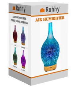 Аромадифузор овлажнител 100 мл Ruhhy 22356. УСТРОЙСТВО 3 в 1 – това е изключително тих преносим овлажнител за въздух, който поддържа пространството в апартамента правилно овлажнено. Модерният му вид ще се впише във всеки интериор, а ароматът му ще добави нотка елегантност към вашия дом. Освен това устройството има вградена красива RGB LED лампа и опция за ароматерапия. АРОМАТЕРАПИЯ – уредът има изключително полезна ароматерапевтична функция. След изливане на маслото във вода, овлажнителят освобождава аромати с релаксиращи свойства (разрешени са само водоразтворими продукти – в противен случай овлажнителят може да се повреди). Комплектът включва цели 3 такива масла! КРАСИВ 3D ОГЛЕДАЛЕН ЕФЕКТ НА ЛАМПА – огледалният абажур изглежда прекрасно, когато лампата е включена. Ефектът на дифузната светлина се разпространява в целия овлажнител, което ще зарадва всеки. ВГРАДЕН ТАЙМЕР – овлажнителят има вграден таймер, който включва овлажняване на всеки 30 секунди; 1ч; 2 часа и включва овлажняване, докато водата в резервоара свърши. Овлажнителят има превключвател за овлажнител и превключвател за лампата.
