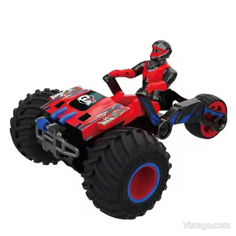 Това АТВ за дрифтове е радиоуправляем модел, проектиран да се движи във всички основни посоки и да изпълнява каскади. Конструкцията е с две масивни предни колела и по-малко задно, което подпомага стабилността при резки маневри. Реалистичният, изчистен дизайн подчертава „мотористкия“ характер на играчката, а ярките светлини добавят ефектен завършек по време на игра.