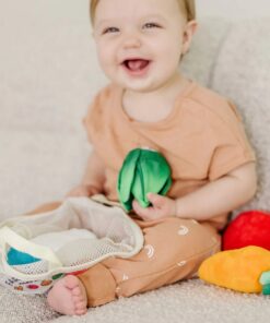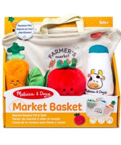 Бебешка кошница за пазар Напълни и разсипи Melissa & Doug. Добавете свеж привкус към времето за игра с тактилни любими храни на фермерския пазар, които радват сетивата! Напълнете мрежестата мини-чанта за хранителни стоки със скърцащ морков, звънтяща бутилка мляко, дрънкащ домат и набръчкана маруля, всички със сладки, приятелски лица. Издърпайте лесните за хващане части и пълнете чантата отново и отново! Пазарната кошница Fill & Spill е увлекателен начин да помогнете на бебета на шест месеца и повече да развият важни сензорни, фини двигателни умения и умения за разпознаване на цветовете. Играчките за бебета и малки деца Melissa & Doug вдъхновяват „а-ха!“ моменти на откритие. Очарователни, разнообразни герои и разнообразие от забавни форми и текстури насърчават изследователската игра за изграждане на умения. Разгледайте още продукти в категорията “Детски инструменти” – ТУК!