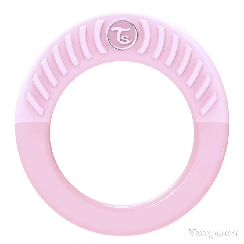 Бебешка чесалка Twistshake – кръгла розова с мек материал и релеф за нежен масаж. Лесна за хващане, без BPA, подходяща над 2 месеца.