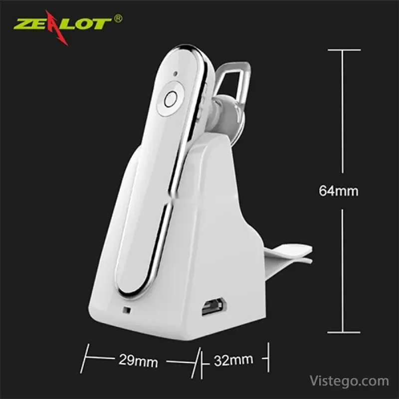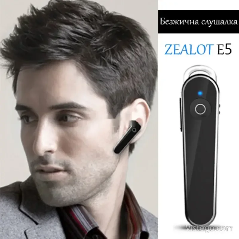 Безжична слушалка ZEALOT E5 с вграден Bluetooth за музика и обаждания, удобна за носене в ухото и с избор на цвят бял или черен.