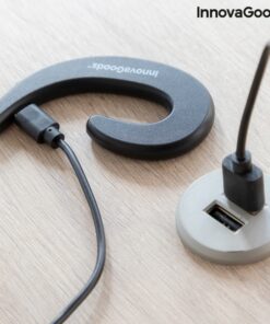 Безжична bluetooth слушалка InnovaGoods е комфортът, който заслужавате. Благодарение на ергономичния си отворен дизайн, слушалката пасва идеално на ухото и е много удобен и лесен за използване уред, без да наранява или дрази кжата. Формата му на кука осигурява сигурно и безопасно прилягане. Тези модерни безжични и презареждащи се слушалки са компактни, изключително леки и лесни за транспортиране и съхранение. Включеният силиконов адаптер концентрира звука, увеличавайки неговия обем и качество при желание. Той разполага с Bluetooth 4.1 с обхват до 10 метра. Идеален за слушане на музика навсякъде или за отговаряне на телефонни обаждания без никакъв проблем, благодарение на вградения микрофон и функцията „свободни ръце“. Включва USB към micro USB кабел за зареждане.