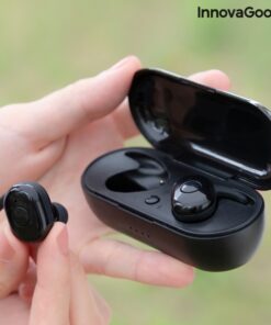 Безжични слушалки с магнитно зарядно InnovaGoods. Тези безжични слушалки с магнитно зарядно устройство и калъф са идеални за слушане на музика навсякъде с комфорт, дори когато спортувате, тъй като позволяват пълна свобода на движение. Имат и интелигентен бутон за управление на функциите. Техният дискретен и елегантен дизайн ги прави много гъвкави слушалки с много предимства.