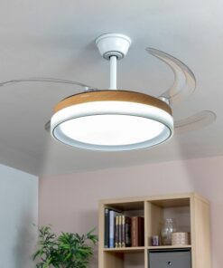 Вентилатор за таван дървен с LED Светлина 72 W InnovaGoods. Този вентилатор за таван с LED светлина и прибиращи се перки предлага множество възможности за създаване на свежа и приятна атмосфера във всяка стая. Има мотор DC, 6 скорости, таймер, 3 вида LED светлина и дистанционно управление. 72 W. Модерен и безшумен вентилатор за таван с лампа, който има въртене лято-зима, студена, топла и неутрална светлина. Перките му могат да се сгъват и скриват. Стаи: 10-20 м². Безшумен, мотор DC: нашият вентилатор за таван с LED светлина и прибиращи се перки е перфектен за наслада от прохладна, приятна и добре осветена среда. Благодарение на своя модерен и елегантен дизайн, лесно се интегрира в декорацията на дома. Предимства на неговия мотор DC: по-лек, по-тих (по-малко триене), по-ниска консумация (до 60-70% по-ниска), по-голям контрол и повече скорости и др. 4 прибиращи се перки, функция лято-зима: този качествен вентилатор за таван с LED светлина е здрав и издръжлив. Изработен е от желязо с перки PC. Позволява 2 режима на въртене (лято-зима). Неговите 4 перки могат да бъдат сгънати и дискретно скрити, когато не се използват. Нашият вентилатор за таван с дистанционно управление има 6 скорости (175-240 об./мин.) и таймер (1-2-4 ч) за по-персонализирана и удовлетворяваща употреба. Този вентилатор със светлина е подходящ за помещения между 10 и 20 м². Мощност: 72 W. Енергийна класификация: E. Този универсален вентилатор за таван с прибиращи се перки е идеален и като LED лампа. Осигурява ефективно осветление, адаптирано към предпочитанията. Разполага с 48 LED светодиода (6000 lm, 36 W) и 3 вида светлина: студена (7000 K), топла (3000 K) и неутрална (4300 K). Този вентилатор за таван с лампа включва дистанционно управление за по-удобно управление на неговите функции (функционира с 2 AAA батерии, които не са включени). В допълнение, той включва инструкции за употреба и монтаж с илюстрации.